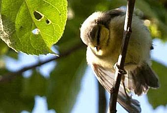 Deux mésanges de l'année, s'endormaient sur les branches du pommier, quand je les ai aperçu.