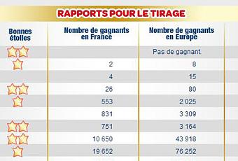 Pour un gros lot de 29 millions, (Du Vendredi) si vous avez 5 bons numéros. Vous ne touchez que 41 140,70 €. Et si vous avez 5 bons numéros et 1 étoile, vous ne touchez que 231 416, 90 €. Je ne parle même pas de ceux qui sont en dessous. Avec 4 bons numéros et 2 étoiles vous ne touchez que : 3856, 90 €. Difficile de faire plus crétin… Non ?
