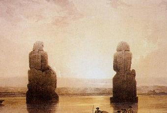 Jusqu’à la construction du barrage d’Assouan, la crue du Nil inondait chaque année les terres fertiles. Les flots atteignaient souvent la bordure du désert et recouvraient entièrement le temple funéraire d’Aménophis III dont on ne voit plus que les deux colosses.