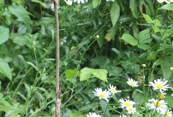 Je poursuis les aventures de mon petit chêne pubescent, planté en janvier, sauvagement écorcé sur toute sa circonférence et sur 30cm de haut, le 1/3 de la hauteur du tronc. J'avais découvert ce désastre le 19 avril et nous avions vu que le 7 mai le feuillage se développait normalement. J'étais pourtant persuadée que j'allais le perdre ou qu'au mieux il repartirait de la base.