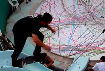 Plusieurs skateurs se sont amusés à réaliser une spirographie dans une piscine vide à l’aide de bombes attachées sous leur planche et déclenchées à distance via un système de contrôle. À voir en vidéo dans la suite. À chacun son trip.
