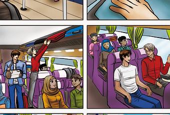 Je travaille toujours sur le manuel scolaire pour les éditions JSF^^. Je dois faire diverses planches BD et illustrations pour décrire le voyage d'un jeune homme au Maroc selon un cahier des charges bien précis :)
