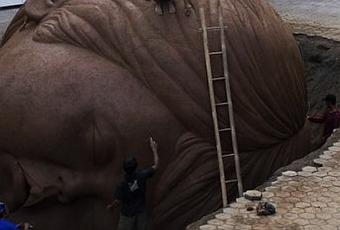 Eddi Prabandono et une quinzaine d’ouvriers ont réalisé une sculpture géante dont le visage est inspirée par la fille de l’artiste âgée de 5 ans. La sculpture est composée de 25 tonnes d’argile.