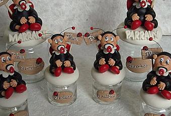 plateau rond de 33,5 cm de diamètre contenant 28 pot à dragée 10H/4 diamètre et 2 pot à dragée parrain et marraine 15H/6,5 diamètre