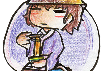 Et pour terminer, une aquarelle! Eh oui, ça faisait longtemps. Il s'agit de Kaimaku Dorama, un personnage que j'ai dû créer pour... Un projet de Phantasm Stage de Touhou! Enfin, pour ceux qui ne connaissent pas, plutôt un niveau bonus fait par des fans. Je vais m'occuper du character design, il y aura donc Koishi Komeiji (qui existe déjà dans l'univers Touhou) en Mid-Boss et ce personnage en Boss.