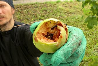 La pomme (cliquer pour zoomer) avait commencé à fermenter : voilà comment l'on devient alcoolique malgré soi (?).
