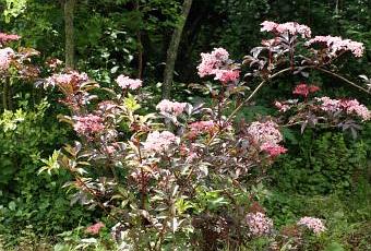 Est-ce encore un accident comme cela se voit parfois sur les arbres fruitiers ? Cela pourrait être dû à la sécheresse mais cela n'était pas le cas en 2007 pour 'Thundercloud' qui poussait sur un terrain très humide, plus humide que celui de Romilly. Est-ce une tendance de ces sureaux à feuillage sombre de se rapprocher du comportement de Sambucus canadensis ? Ces sureaux sont de création très récente et leur comportement lorsqu'ils ont atteint la maturité est peu connu. Les miens sont jeunes ou ont été transplantés. Mon plus grand 'Black Lace' est aussi grand que celui de Jardiland mais il prend un aspect d'arbre car la transplantation lui a fait perdre ses branches les plus basses.