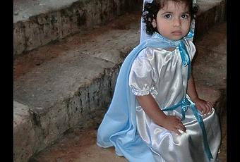 Les petites filles arabes orthodoxes sont habillées aux couleurs de la Mère de Dieu. La même tradition existe aussi chez les catholiques (les garçons sont habillés en franciscains).