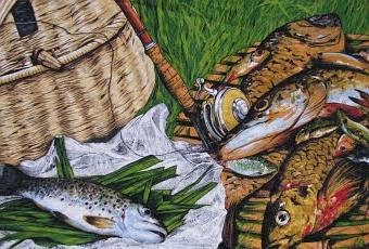 Pour moins de 100 euros, on s'offfre une tête de cervidé, une commode mi -bois mi-rotin , et un torchon des années 50 au motif improbable !
