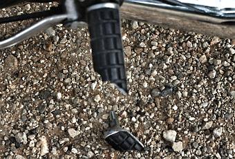 Debout, le pare-carter est limé pliê. Mais le moteur, intact. La cale-pied fendu. Mais la bécane, intacte. Le cuir indifférent à l’incident, trop limé par les années et les bornes; la Timberland a quelques petites traces de croc sur le flan gauche. Mais le motard, intact.