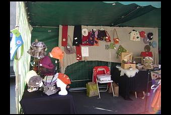 lors de l'expo avec sa petite robe "chaperon rouge"