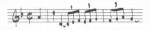 Prenons donc un contrepoint, c'est à dire une fugue. Il y a un thème repris plusieurs fois en décalages. Voilà le thème :