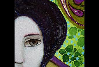C'est chose faite et aucun remords ne m'anime. Ce tableau coûtera très cher (je précise parce que dès fois des gens plein d'humour me propose par mail 30euros...et mon égo en prend un coup!) car je trouve qu'il va bien dans mon salon entouré de mes bibelots Art Nouveau et autres plumes de paon...Ne cherchez pas le style de cette toile dont on peut seulement dire qu'elle est figurative; un joyeux mélange d'Art Nouveau, de japonisme et de bohème!