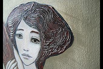 Technique mixe sur panneau de bois recyclé et d'essence inconnue, une vieille porte de placard (il y en a 4) récupérée dans un vieux magasin albigeois qui changeait d'enseigne.