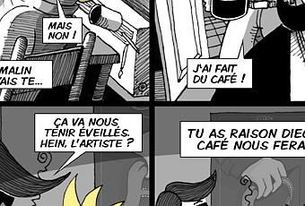 On reprend l’histoire quand nos drôles de tueurs proposent à l’auteur, du café…