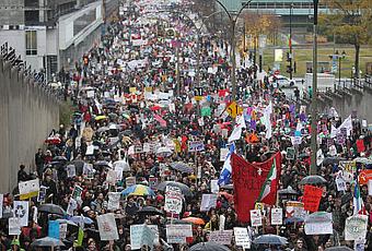 Manifestation de feu! Hourra pour le chaos ainsi que la petitesse du parc Émilie-Gamelin qui n'a permis a aucun contingent de réellement se former... C'était magnifique de voir cette foule compacte mélangée et pleine de de couleurs.