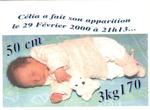 Le 29 Février 2000 Célia a décider de pointer son nez 3 semaines plus tôt que prévu (pourquoi faire simple quand on peut faire compliquer). Tu n'as pas voulu attendre et tu as décidé de venir au monde ce jour là et pas un autre. Ce soir là, l'OM jouait au Stade velodrome et il pleuvait beaucoup sur Marseille. Le gynécologue qui devait s'occuper de "l'affaire" m'avait dit le matin même "si vous accouchez ce soir, ce ne sera pas moi car je vais au match". Ah ouais...............