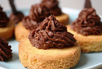 Placer la mousse obtenue dans une poche à douille et former des petits dômes sur les sablés.