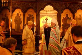 Mgr Hilarion y a en effet célébré la Liturgie, comme en témoigne le site de la cathédrale Saint-Alexandre-Nevski rue Daru, où l'on trouvera de nombreuses autres photos de l'événement.