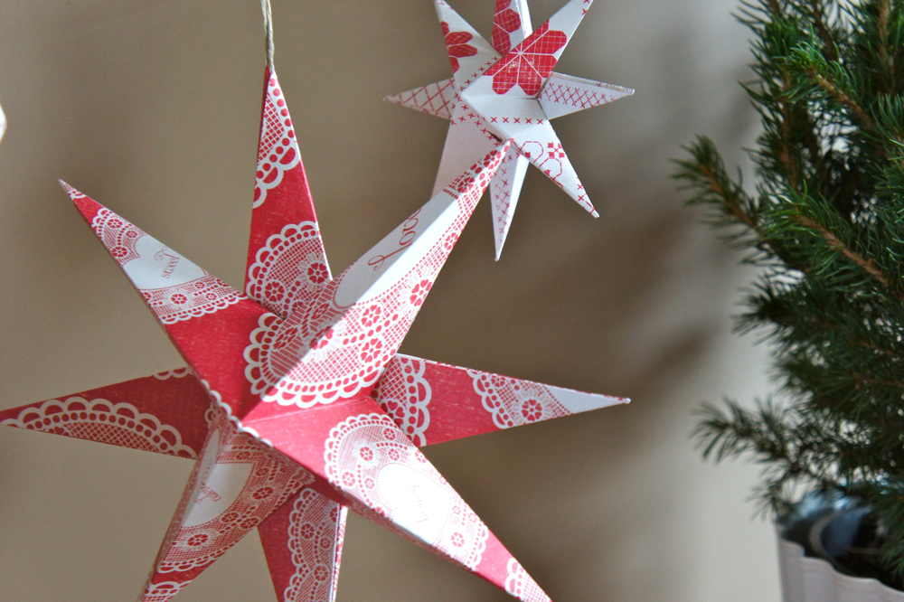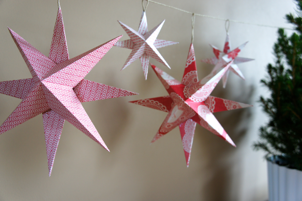 Et voilà, la première partie de votre étoile est terminée ! Répétez les étapes 1 à 7 pour réaliser la deuxième partie de votre étoile mais attention, avant de refermer la dernière branche de votre étoile, n'oubliez pas de fixer à l'intérieur un petit système d'attache. Ci-dessous, j'ai fixé une petite boucle réalisée avec de la ficelle.