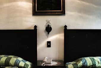 Peinture blanche craquelée, chambre avec deux lits simples, micro kitchenette avec résistances électriques datant de la découverte des Amériques pour chauffer de l’eau ou autre, mobilier rustique, bidet aux allures de sex toy… L’hôtel est un palace déglingué. Avec connexion Wifi.