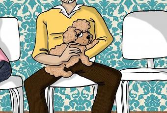 En arrivant, étonnamment, je repère immédiatement que la salle d’attente est étrangement peuplée : au fond, quinze maîtres et maîtresses (d’animaux hein, je ne parle pas de pratiques SM), entassés avec leurs bestiaux, comme dans un wagon éponyme. Au fond, l’autre, opposé, assise sur une chaise, entouré de deux chaises vides, une seule personne, à l’allure douteuse, un petit caniche qui fut un jour blanc sur les genoux. Au milieu, moi, devant faire un choix cornélien : m’entasser au fond, me poser à l’autre fond.