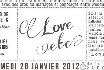 Les organisatrices sont des magiciennes, le lieu est majestueux et les participants pleins de talent ... Aussi quand Nessa et Clémentine m'ont proposé leur projet, il n'y avait pas d'hésitation à avoir. Je suis donc ravie de participer à cette troisième édition { Love etc } qui aura lieu sur Paris à la cartonnerie le 28 janvier 2012 de 14h à 20h.