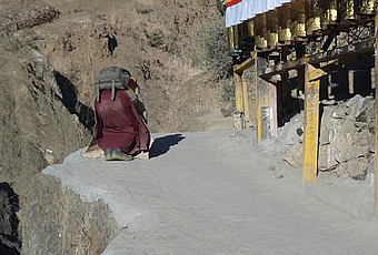 Aujourd'hui, toujours sur la Kora autour du Tashilhunpo, le monastère des Panchen Lamas à Shigatse, une batterie de moulins à prières taille normale comparée à celui d'hier.