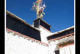 Aujourd'hui, la plupart des toitures des maisons tibétaines est coiffée de drapeaux mais pas que ... j'en ai vu aussi sur un chalet à Val Thorens pendant les vacances de Noël ...