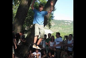 C'est Lucas Caussade, j'ai 16 ans et je vis près de Toulouse à Pibrac. Je fais du slackline depuis environ 2 ans. Ma spécialité c'est le trickline, mais je fais aussi de la longline et un tout petit peu de highline. J'ai commencé à me mettre sérieusement au slackline lors des Natural Games 2010, ou mes amis de Slack.fr m'ont offert un jumpline*. A partir de ce moment là, je n'ai plus arrêté de «jumper». Lors de ces derniers Natural Games, j'ai réussi à aller jusqu'en quart de finale contre Thibault de SlackLille, que je tiens à féliciter.