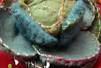 Ma marotte préférée, marier la broderie au crochet et un soupçon de couture .... laine katia fine pour la bordure de feuille, doublé de picots vert clair katia sport,le reste est de la laine de brocante doublure en coton à pois pour l'intérieur.