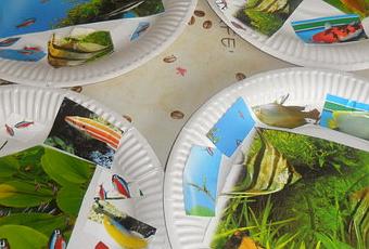 A chacun son aqaurium . Une assiette en carton des images de poisson de la colle .D'autre photos ce week end pour l'instant je vais préparer les crêpes que nous dégusterons à quatre heure miam miam