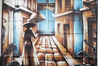En photo, porte peinte dans une ruelle de Montpellier.