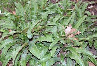 Ce n'est pas la bestiole que je veux vous montrer mais la fougère du même nom. Phyllitis scolopendrium est une jolie fougère à frondes entières non découpées. Ce sont ses sores qui évoquent la bestiole et lui ont valu ce nom. Elle est d'ailleurs si fière de ses sores qu'elle retourne un peu ses frondes pour les montrer.