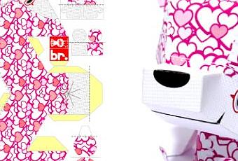 Je ne me lasse plus des personnages 'br.' imaginés par l'incontournable Shin Tanaka ! Son dernier-né fera un cadeau génial (et vraiment pas cher ;p) pour la St-Valentin. Franchement... il est pas TROP mignon avec ses petits coeurs roses ? La série des papertoys 'br.' étant éphémère (les templates restent disponibles quelques semaines...), je vous conseille de rapidement télécharger le patron, quitte à l'assembler plus tard...