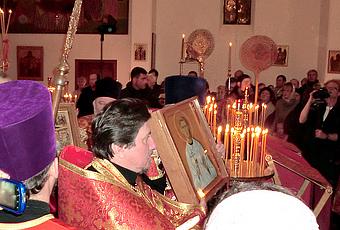 C'est pendant l'office des Matines pendant le polyeleos que l'icône de saint Alexandre (Schmorell) est présentée et vénérée pour la première fois. Deux prêtres portant l'icône du saint nouvellement canonisé, deux autres prêtres portant l'icône des Nouveaux Martyrs de Russie, que nous fêtons également aujourd'hui, précèdent les évêques qui vont chanter solennellement le mégalinaire aux Nouveaux Martyrs et à saint Alexandre qui est aussi considéré comme Nouveau Martyr russe.
