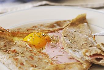 Fouetter la pâte à crêpe pour bien la re-mélanger. Huiler une poêle à crêpes et la mettre à chauffer sur feu moyen. Verser une louche de pâte dans la poêle en la faisant tourner pour bien la répartir puis laisser chauffer 1 minute. Retourner la crêpe avec une spatule et casser un oeuf dessus, ajouter des lamelles de fromage et une tranche de jambon. Dès que l'oeuf est cuit, plier la crêpe et servir !