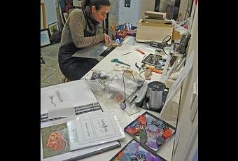 Les créatrices en action aux Quat'Sardines ce Week-end, ne manquez pas de les rencontrer samedi 11 et dimanche 12 février après-midis: Isabelle Talfer travaille le verre à la manière des perliers de Murano, Agnès Legendre artisan d'Art a créé spécialement quelques modèles dans l'esprit "Saint Valentin" pour la galerie. En tablier l'une au chalumeau l'autre à la cheville d'établis, l'improvisation peut être au rendez-vous mais c'est surtout la maîtrise d'une technique et la connaissance des matériaux qui les distinguent de l'amateurisme... une ambiance d'atelier studieuse et créative.
