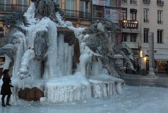 Cent ans plus tard, nous sommes en 1992, elle est à nouveau déplacée, cette fois-ci, au nord de la place, en face de l'entrée du musée des Beaux-Arts. Cette modification d'emplacement est liée à la construction d'un parc automobile souterrain et à la rénovation complète de la place par Christian Drevet et Daniel Buren. Des colonnes faisant face au Palais Saint Pierre , 69 mini fontaines - Lyon n'est-elle pas la préfecture du Rhône ! - de lumière et de marbre, une harmonie des couleurs gris, blanc et noir ainsi qu' un jeu de lumière, changeant en fonction de l'heure de la journée, sont quelques élements de la scénographie retenue. C'est donc un ensemble très homogène, et ce malgré des bâtiments d'époque et de style différents, que le passant découvre et admire aujourd'hui.