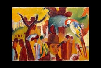 Oeuvre présentée : August Macke, Kleiner Zoologischer Garten in Braun und Gelb, 1912 (47 x 68 cm).