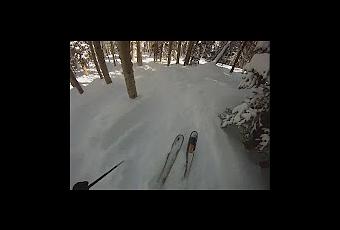 Comme la neige n'a pas cessé de tomber tout l'après-midi et que les massifs étaient pris dans une épaisse couverture nuageuse, je suis resté en forêt et j'ai fait dix “Centenial Trees” enchaînés, parmi les arbres, en me laissant littéralement porter, virage après virage, par ce moelleux matériau qui pardonne tout en douceur ... J'en ai littéralement transpiré tant j'ai du faire d'efforts, tant il a fallu me concentrer sur mes trajectoires parmi tous ces arbres et surmonter la résistance importante de cette neige fraiche et abondante.Ce jour-là, il est tombé 36 centimètres de neige et j'ai bien ressentit celle-ci qui ne cessait pas de me caresser les bas des genoux. Toutes ces bosses qui étaient encore bien désagréables 24 heures auparavant, ne comptait désormais plus, les branchages étaient éclipsés et bien moins menaçants, les troncs étaient enfin cachés et les cailloux enterrés; c'est incroyable la différence qu'une trentaine de centimètres de neige fraîche peuvent avoir sur une journée de ski !