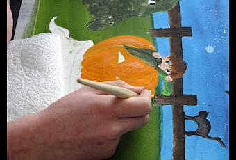 Je lui ai donc prêté mes crayons et mes pinceaux, et Evelyne lui a prêté une de ses comptines. Voilà ce que çà donne :