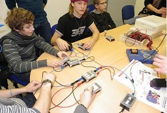 Nous leur avons fait tester le fonctionnement des différents composants (interrupteur, bouton poussoir). Aussi nous avons pu utiliser plusieurs lampes pour leur montrer les différents types de montages (série, parallèle), leurs avantages et leurs inconvénients.