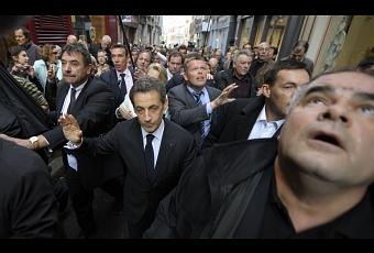 Des millions de gens en France se sont aliénés contre ce que tu es, contre ce que tu représentes, ce que tu incarnes : la France des RICHES. La France de l'injustice sociale. La France toutou tenu en laisse, comme l'Angleterre, des USA. La France de l'exclusion. Vouloir dans cette campagne faire peau neuve, vouloir afficher une virginité impecc-populo-démago ne dupe personne. Au contraire, c'est grotesque et ça choque ! Les gens en bavent, en chient, dans une grande proportion. Millions de gens en difficulté. La vie est difficile oui, pour becter et régler son loyer, pour élever une famille et la France que tu incarnes et que tu incarneras définitivement mon petit père c'est une France de riches arrogants. De riches qui pissent sur la plèbe du haut de leurs balcons. Alors, t'étonnes pas si y'a des réactions quand tu descends "dans la rue". C'est que la première. En mai, t'es viré, c'est tout, c'est aussi simple que ça !!!! Bravo Bayonne !!!