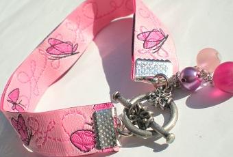 Les Perles de Marielle nous propose un adorable bracelet de tissus rose orné de papillon et de jolies perles aux tons assortis, tres tendre et fort romantique :