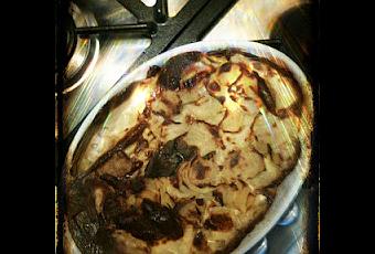 Des pommes de terre " Charlotte " finement coupées, un grand plat à gratin bien frotté à l'ail . On alterne pommes de terre et crème fraîche ( allégée !! ) . Poivre et noix muscade râpée .On oublie gruyère et autre fromage râpé .