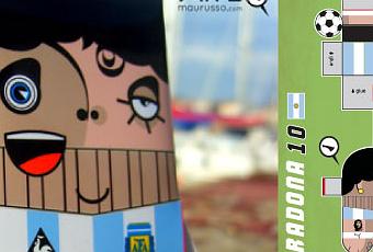 Ce papertoy de l'artiste italien Maurizio Russo détonne par sa construction graphique. On y retrouve toute la dualité du personnage de Maradona, autant réputé pour ses qualités de footballeur que pour ses excès (en cocaïne, notamment...). Un papertoy "double-face" très subtile (et on ne peut plus simple à assembler) qui plaira forcément aux inconditionnels...