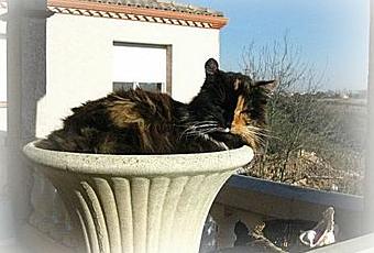 Elle adore se chauffer au soleil dans ce pot de fleurs ou je n'arrive jamais a rien y planter à cause d'elle !