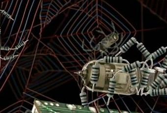 Réalisée par Cyriak Harris (UK) aka Mutated Monty qui pour beaucoup est probablement l’un des meilleurs animateurs expérimentaux contemporains, voici un étrange générique intitulé Cobwebs (toiles d’araignée) qui est une sorte de mise en abime composée d’araignées (elles-même composaient de circuits électroniques et de membres humains).