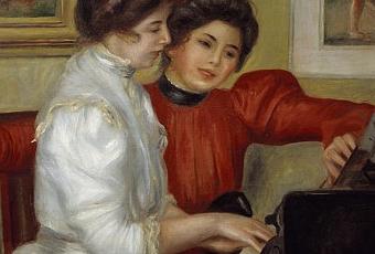 Dans l'appartement de leur père musicien, Yvonne joue du piano assistée de sa cadette Christine. Peintes par Renoir, les sœurs Lerolle épouseront deux fils Rouart. Ce tableau, Yvonne et Christine Lerolle au piano (1898) est resté accroché dans le salon du peintre jusqu'à sa mort. Crédits photo : ©Photo Josse/Leemage